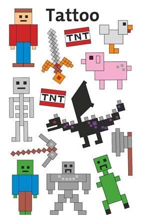 A digitális világ minden rajongójának! Tetováljatok Pixel & Co figurákat magatokra – persze nem igazából, mégis megtévesztően élethűeket. A menő digitális tetoválásokkal mindenkinek lehet kedvenc pixelje! Lepje meg gyermekeit fantasztikus tetoválásokkal, amelyek tökéletesek ajándéknak, meglepinek, születésnapi bulikra vagy egyszerűen egy közös játékhoz a gyerekeknek.