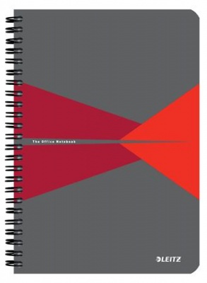 Spirálfüzet, A5, kockás, 90 lap, PP borító, LEITZ "Office", szürke-piros